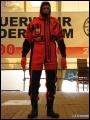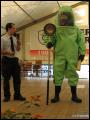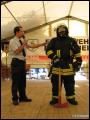 Weiterhin wurden Hitzeschutzanzüge in drei verschiedenen Ausführungen - von leichtem Schutz über mittleren bis hin zu schwerem Hitzeschutz - gezeigt. Während man einen Wohnungsbrand (600 bis 800°C) noch unter normaler Brandschutzkleidung löschen kann, verursachen bestimmte Feuer, wie zum Beispiel ein brennender Benzin-Tanklaster, erheblich höhere Temperaturen. Damit sich Feuerwehrleute dennoch dem Brand soweit nähern können, dass eine Brandbekämpfung möglich ist, gibt es Hitzeschutzanzüge. Diese bestehen aus einem speziellen Material, das die Wärmeentwicklung zumindest teilweise abweisen kann. Einige dieser Garnituren kommen aufgrund ihrer Spezialisierung so selten zum Einsatz, dass es sogar für Feuerwehrleute selbst eine höchst interessante Vorführung war.