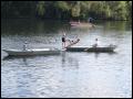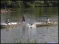 | Daß das Fischerstechen diesmal nicht wie üblich auch am Fischerfest-Sonntag stattfand, war etwas ungewöhnlich, hing aber damit zusammen, dass an diesem besagtem Sonntag ganze Ozeane aus dem Himmel fielen. Somit wurde entschieden, das Fischerstechen auf unser Jubiläum zu vertagen, was sich letztendlich -wettertechnisch- als einen Glücksgriff herausstellte. Bei schönstem Wetter stiegen dann 3 Damen und 7 Herren nacheinander in zwei Boote, um sich danach dann wieder herunterzustossen.