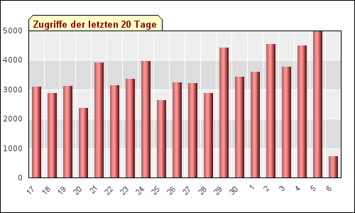 | Nachfolgend sehen Sie die derzeitigen Statistiken unseren Internetauftritt betreffend. Die Statistiken werden zum Zeitpunkt des Abrufs automatisch erstellt und spiegeln somit immer den aktuellen Stand dar. | |