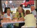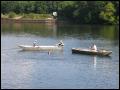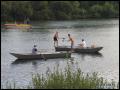 | Daß das Fischerstechen diesmal nicht wie üblich auch am Fischerfest-Sonntag stattfand, war etwas ungewöhnlich, hing aber damit zusammen, dass an diesem besagtem Sonntag ganze Ozeane aus dem Himmel fielen. Somit wurde entschieden, das Fischerstechen auf unser Jubiläum zu vertagen, was sich letztendlich -wettertechnisch- als einen Glücksgriff herausstellte. Bei schönstem Wetter stiegen dann 3 Damen und 7 Herren nacheinander in zwei Boote, um sich danach dann wieder herunterzustossen.